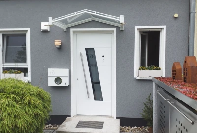 Wir planen millimetergenau Ihre neue Haustür und erstellen gerne eine Computer-Simulation, in dem wir Ihre neue Haustür in ein Fassadenfoto Ihres Eingangsbereichs integrieren.