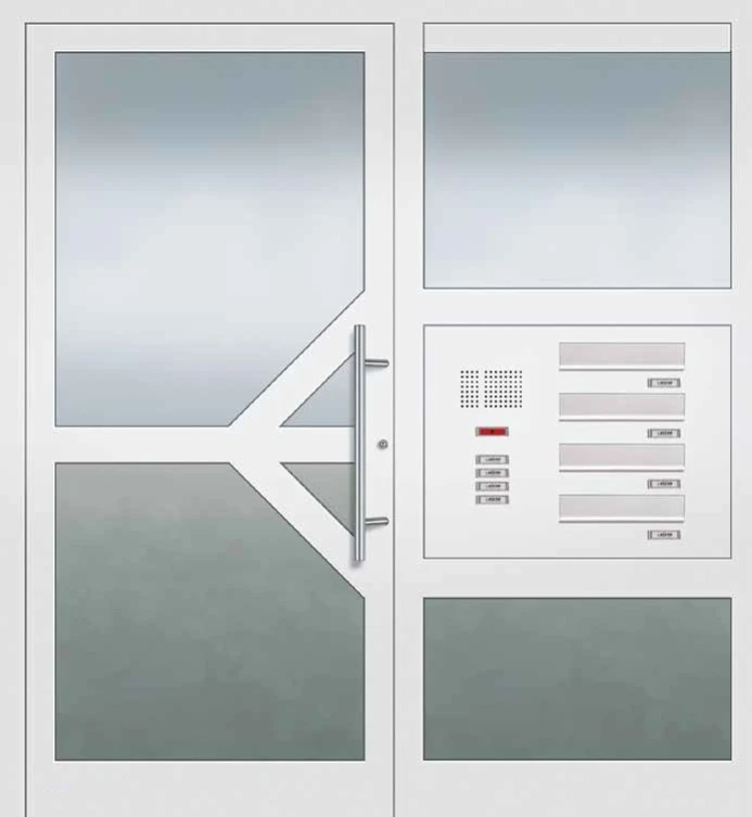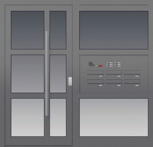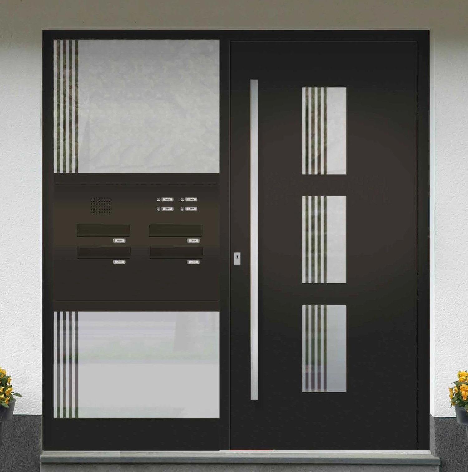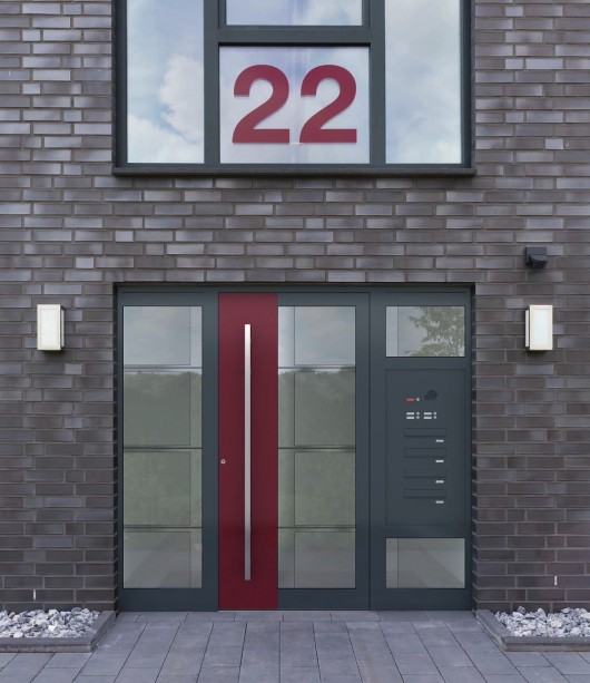 Auf Wunsch erhalten Sie jede unserer Haustüren mit einem oder mehreren Seitenteilen und umfangreichem Zubehör zum Einsatz in Mehrfamilienhäusern.