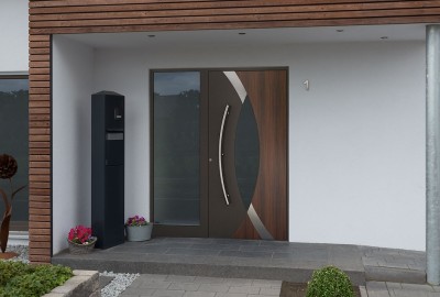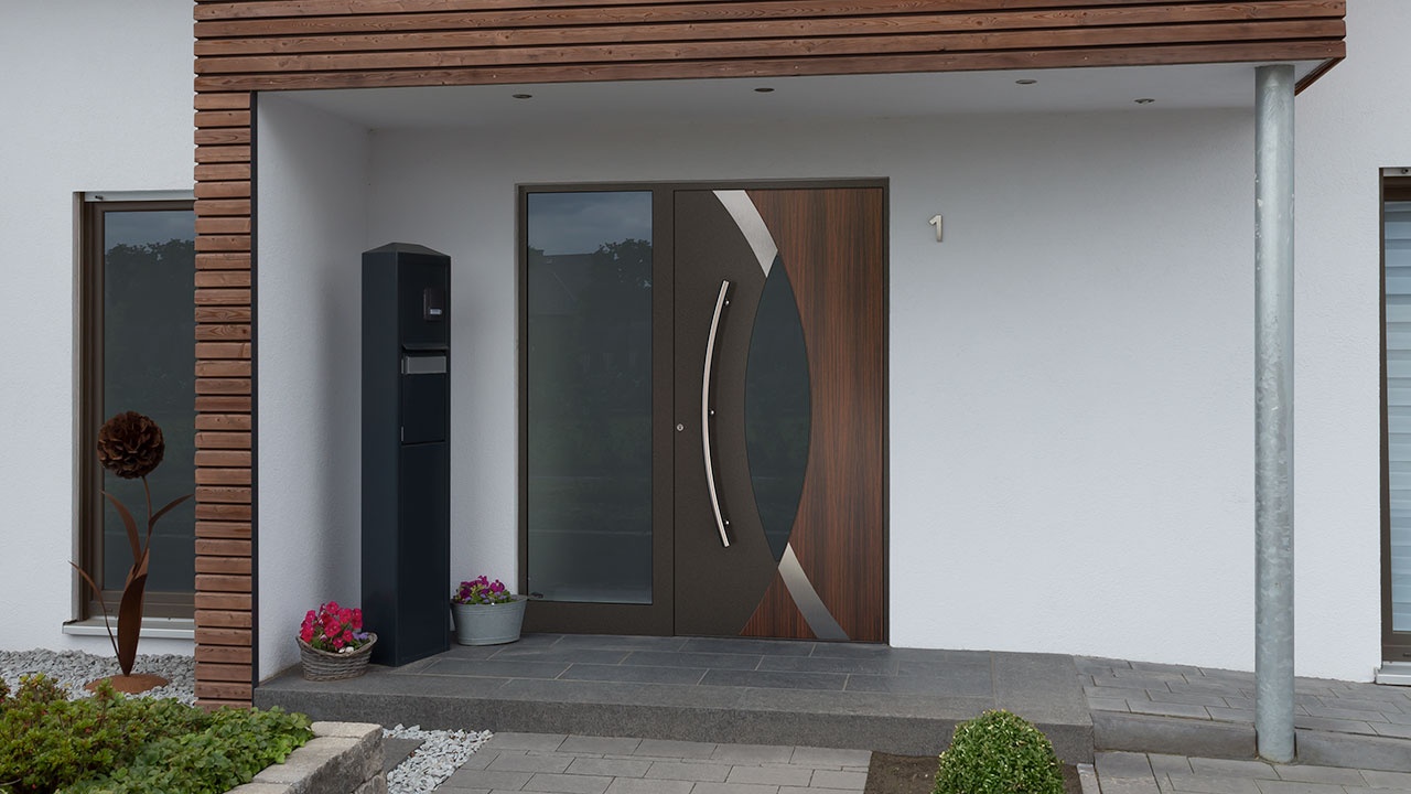F: 0347 Manganese | Aufdoppelung, 0439 Palisander Feinstruktur | Applikation in Edelstahl-Optik nur außen