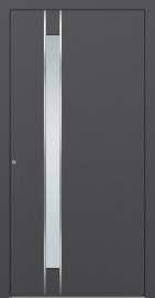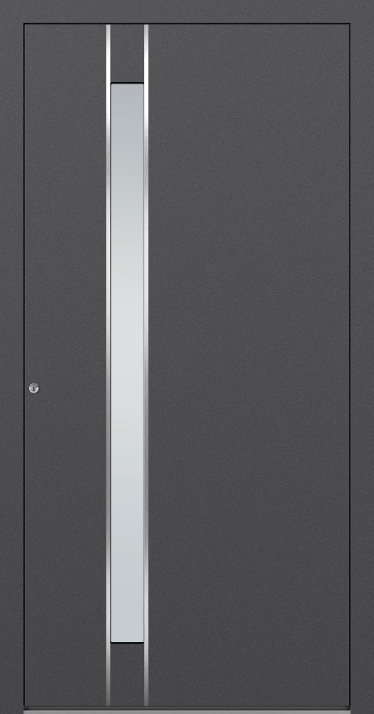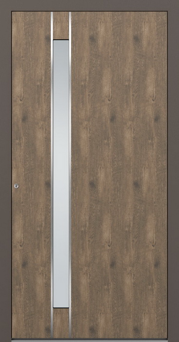 F: Füllung mit integrierter Griffmulde, 0484 Eiche Brettholz Sand Feinstruktur | Streifen in Edelstahl- Optik eingelegt nur außen