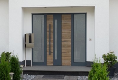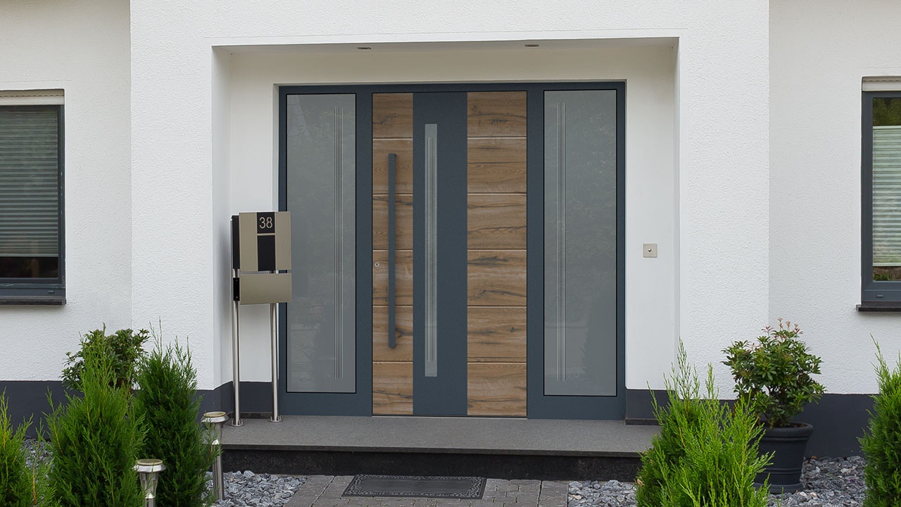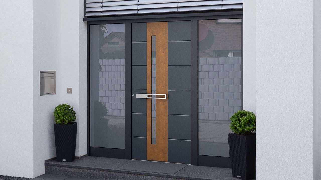F: 0507 Stadlholz Grau Feinstruktur / RAL 5008 Graublau | Nutenfräsung nur außen