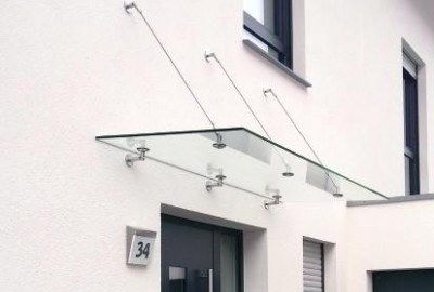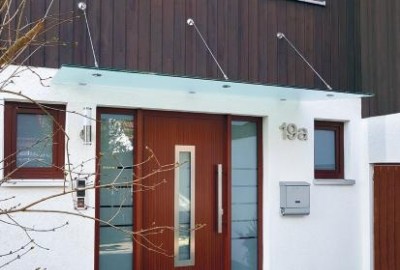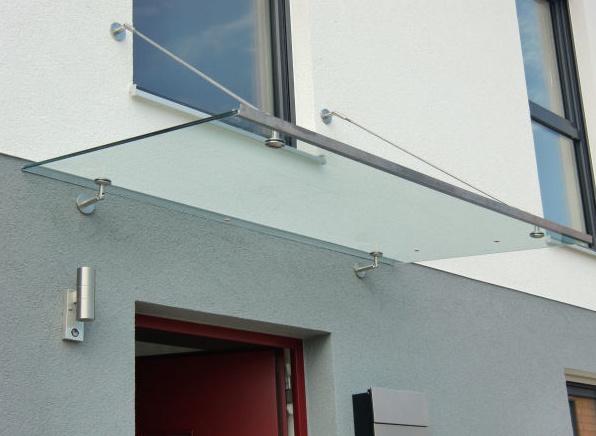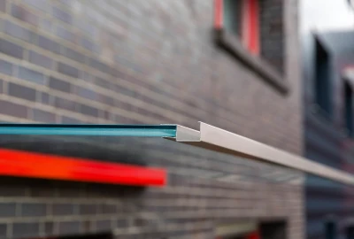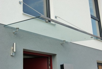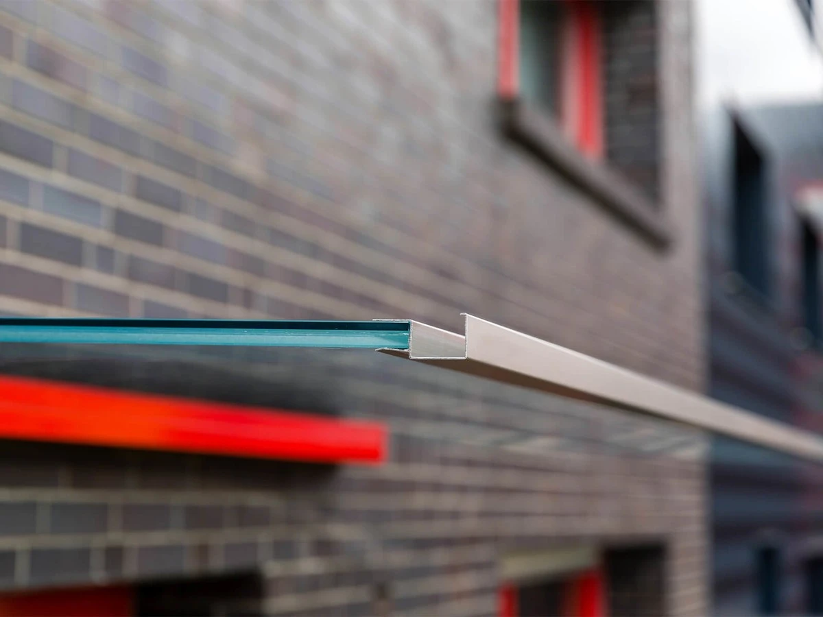 Regenrinne in zwei Ausführungen, Weißglas bei klarem oder satiniertem Glas, Signapur Glasversiegelung
