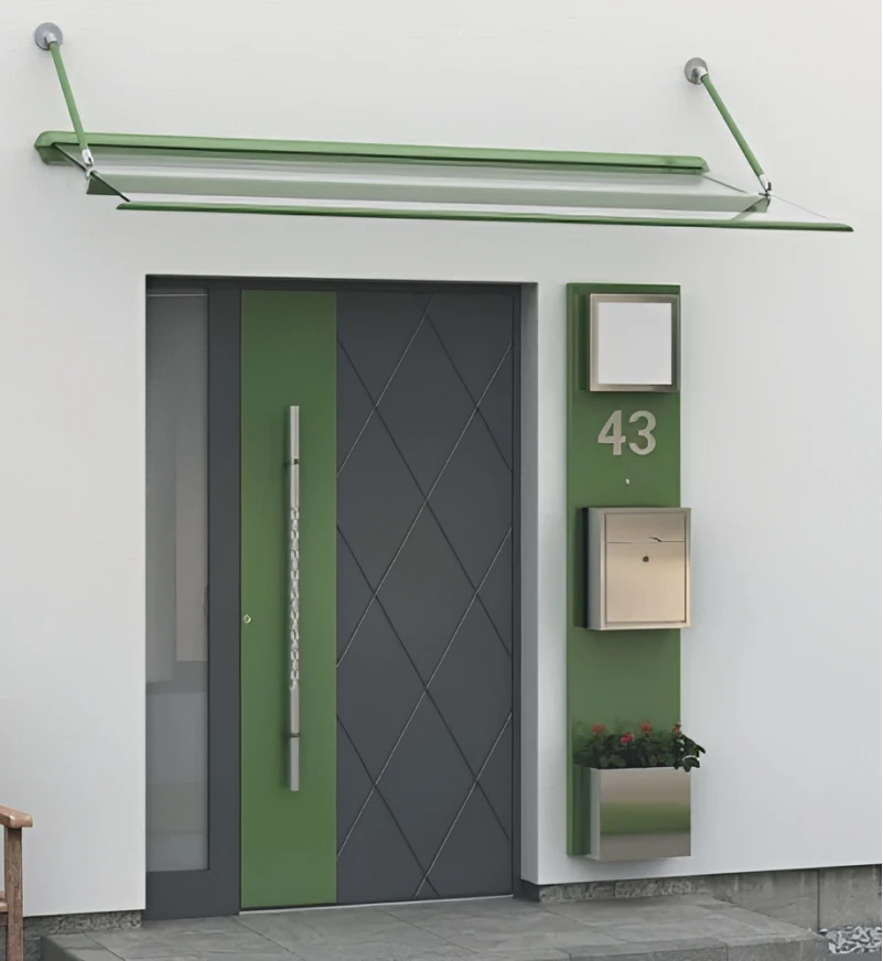 - Optional ist jedes Vordach mit einer LED-Beleuchtung ausstattbar; LED-Beleuchtung ist bei Standardrastermaßen immer in ganzer Vordachbreite durch kalt- oder warmweiße Leuchtdioden im Lichtkanal montiert