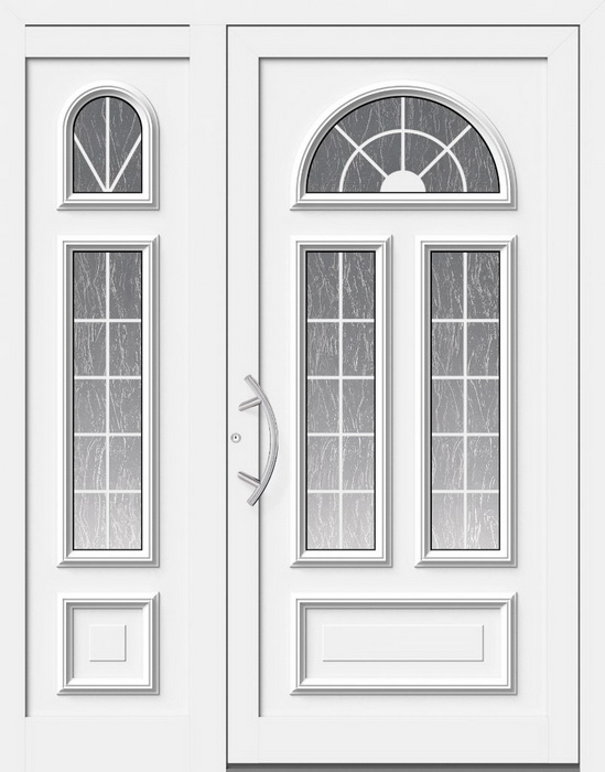G: Verglasung Gotik weiß mit innenliegenden HAFÜ-Stilsprossen weiß